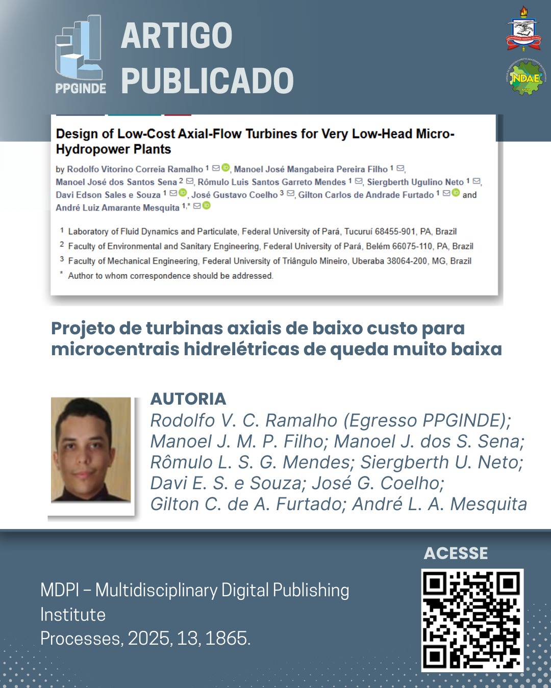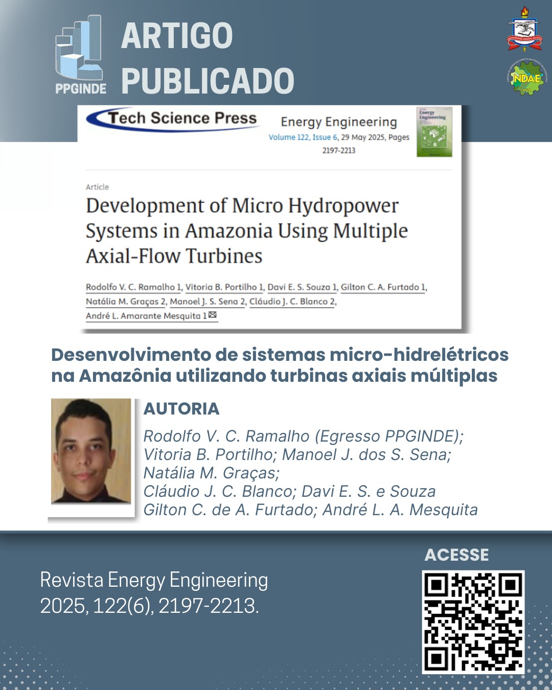 O PPGINDE divulga o artigo intitulado “Development of Micro Hydropower Systems in Amazonia Using Multiple Axial-Flow Turbines” (Desenvolvimento de sistemas micro-hidrelétricos na Amazônia utilizando turbinas axiais múltiplas) de autoria de Rodolfo V. C. Ramalho, Vitoria B. Portilho, Manoel J. dos S. Sena, Natália M. Graças, Cláudio J. C. Blanco; Davi E. S. e Souza, Gilton C. de A. Furtado e André L. A. Mesquita.